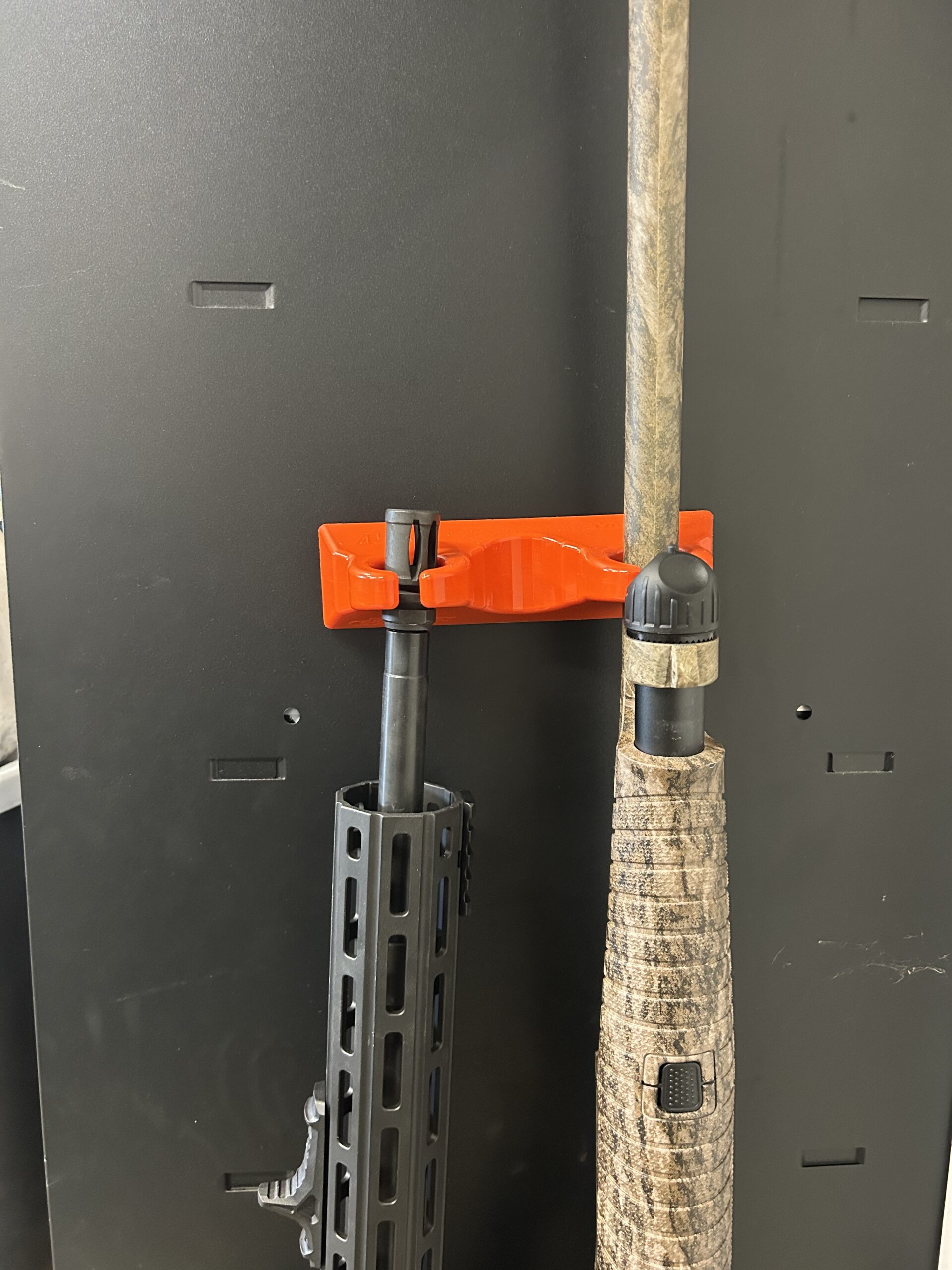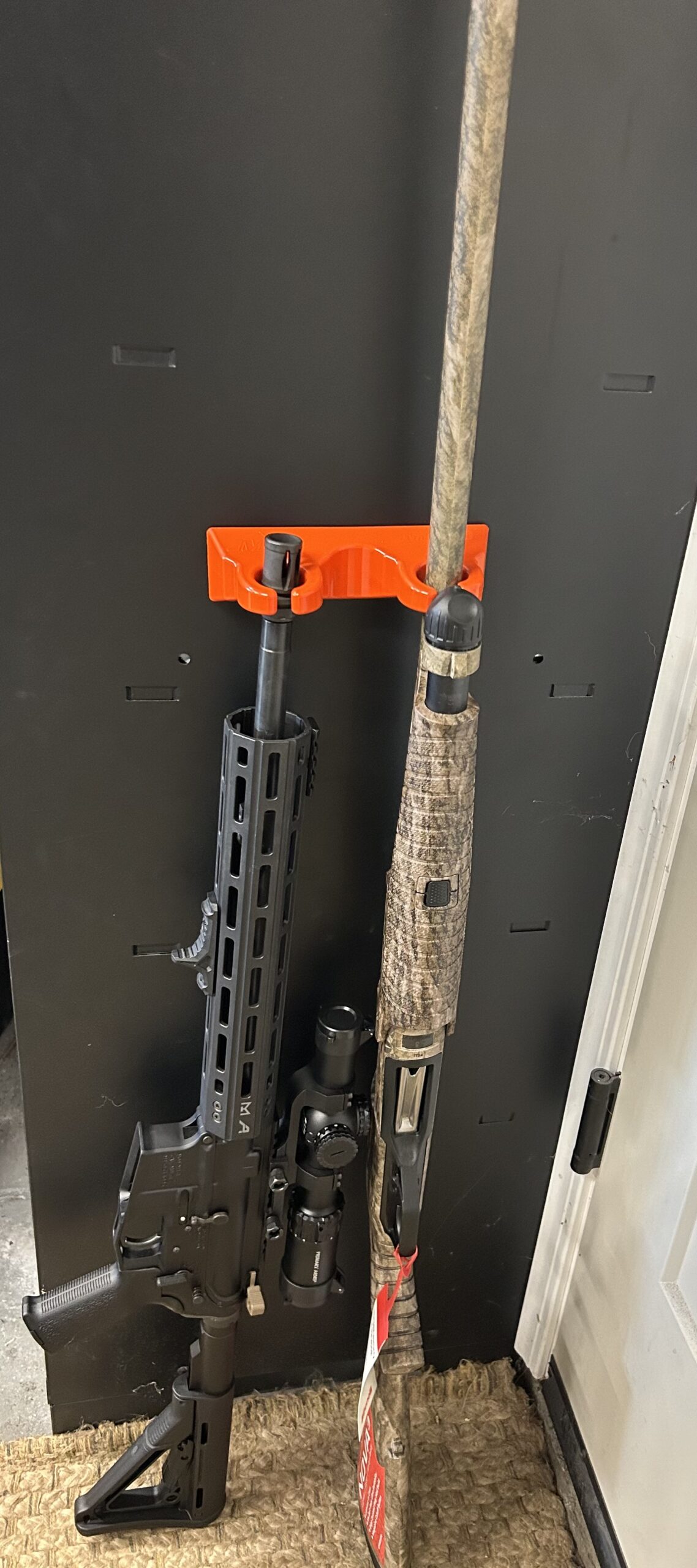 Here it is… the most effective, portable, gun rack on the market! This one actually works!! It contains 2 high powered neodymium magnets with countersunk holes, custom molded and encased in pliable polyurethane rubber to protect not only the firearm but the surface its attached too. It can be attached to anything metal (aluminum requires a steel plate), plastic and wood. Currently available in Safety Orange, Hotty Pink, and Black with more colors coming soon. Best of all… it is manufactured in the USA!!